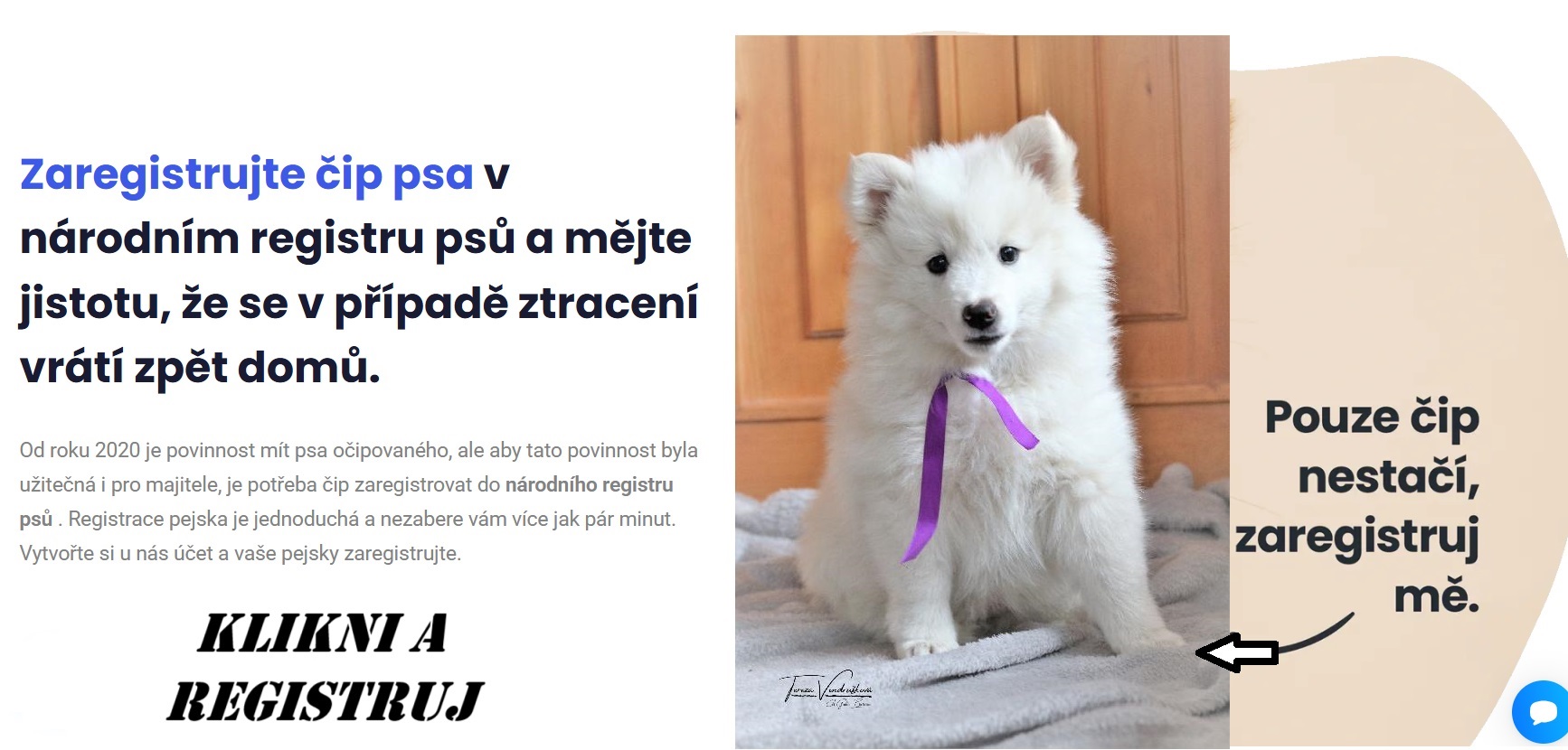 Každé štěně odchází z naší chovatelské stanice s čipem, který mu aplikovala naše paní veterinářka. Je splněná zákonná povinnost, lísteček s číslem čipu jste dostali s pet pasem. Tímto to ovšem nekončí ! Pozor !! Pejska je nutné ještě vložit do veřejného registru.